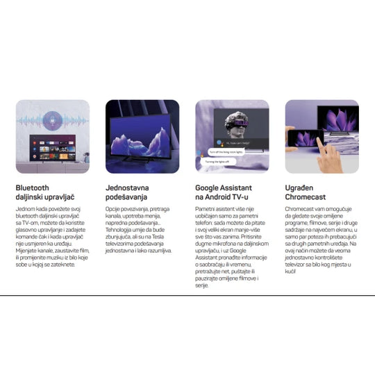 Veličina ekrana: 40” (101cm) Rezolucija ekrana: 1920x1080 Vrsta tjunera: DVB-T/T2/C/S/S2 Smart OS: Android TV 11 Unaprijed instalirane aplikacije za Smart TV: Gogle Play, Netflix, Prime video, YouTube, Media player… Podržane aplikacije: EON, Orion TV, Deezer, Spotify,...Redovna cijena KM 545,00Redovna cijena KM 545,00 -